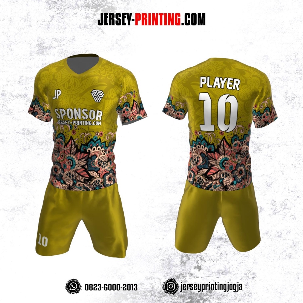 Jersey Futsal Hijau Olive Krem Orange Motif Batik