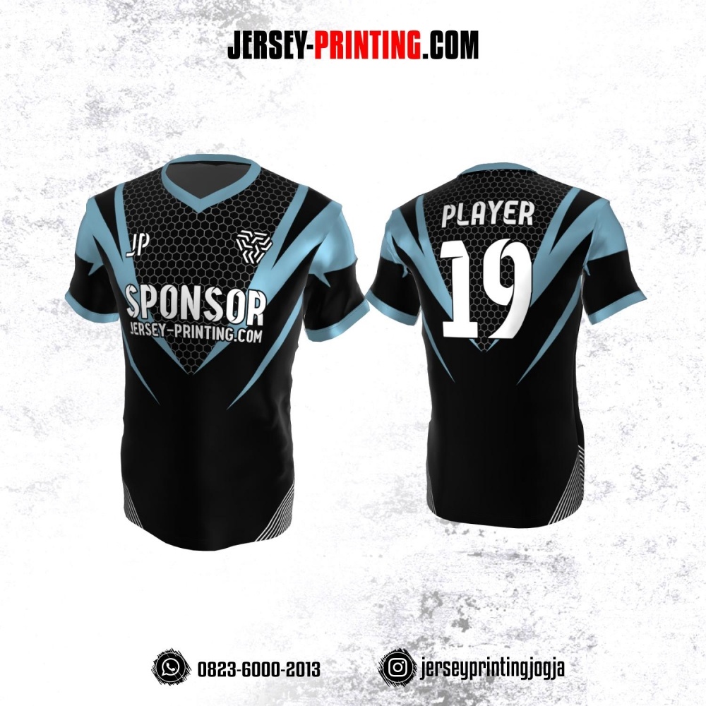 Jersey Atasan Badminton Volly Lari Futsal Hitam Biru Abu-abu Motif Honeycomb
