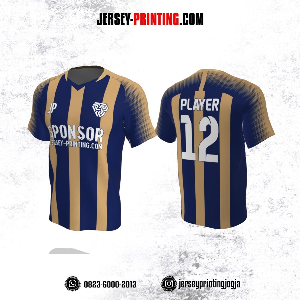 Jersey Atasan Badminton Volly Lari Futsal Navy Krem Motif Stripe