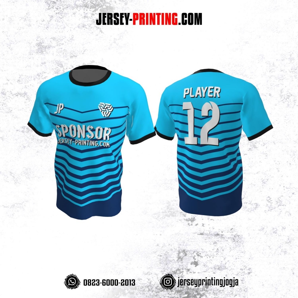 Jersey Atasan Badminton Volly Lari Futsal Biru Motif Stripe Dongker