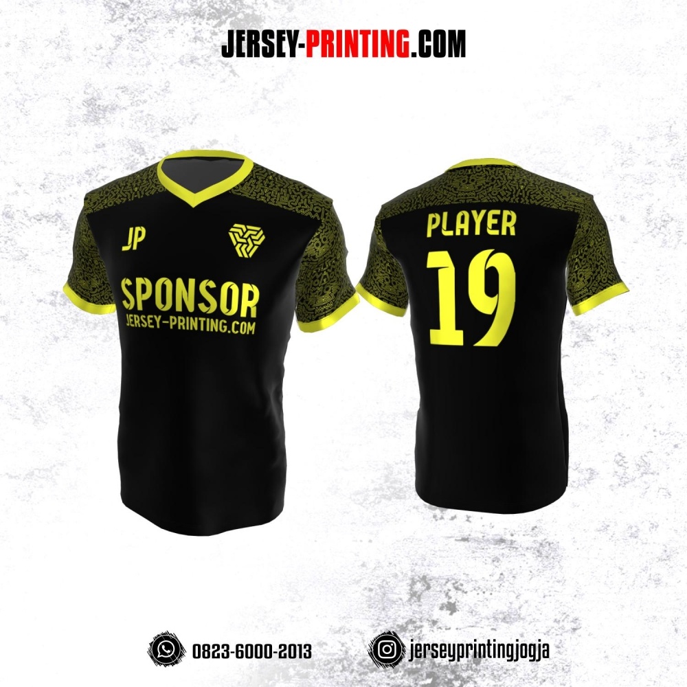 Jersey Atasan Badminton Volly Lari Futsal Hitam Motif Abstrak Kuning