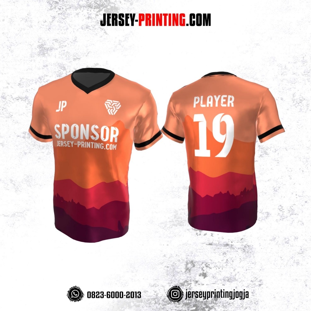 Jersey Atasan Badminton Volly Lari Futsal Orange Merah Ungu Motif Pemandangan
