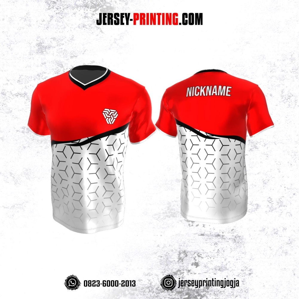 Jersey Atasan Badminton Volly Lari Futsal Putih Merah Hitam Motif Seamless
