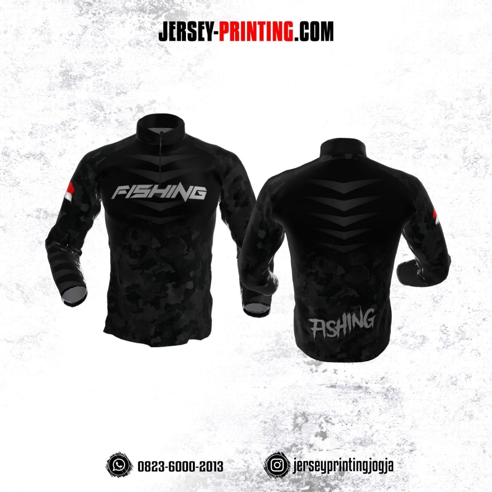 Jersey Mancing Fishing Angler Resleting Lengan Panjang Hitam Abu-abu Motif Abstrak