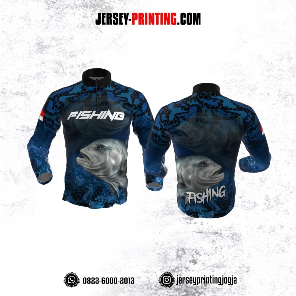 Jersey Mancing Fishing Angler Resleting Lengan Panjang Biru Hitam Motif Abstrak