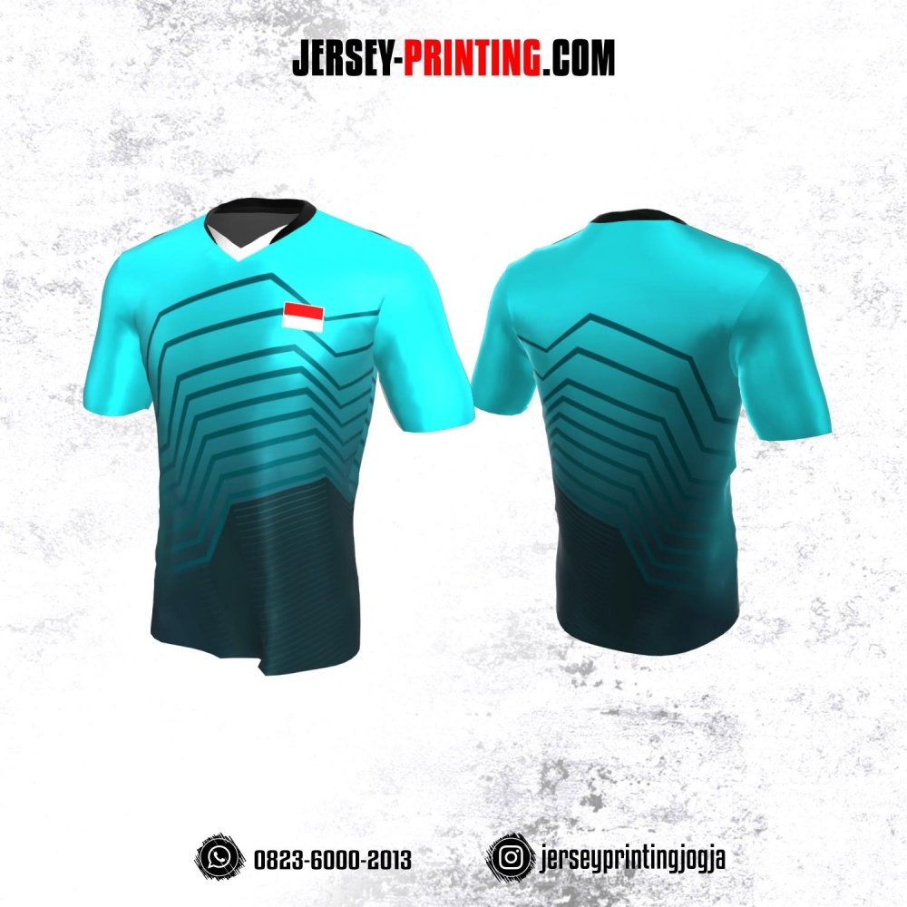 Jersey Atasan Badminton Volly Lari Futsal Tosca Teal Motif Garis