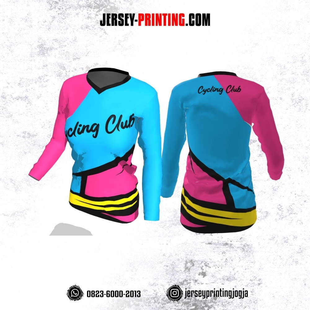 Jersey Cewek Gowes Sepeda Biru Magenta Lengan Panjang
