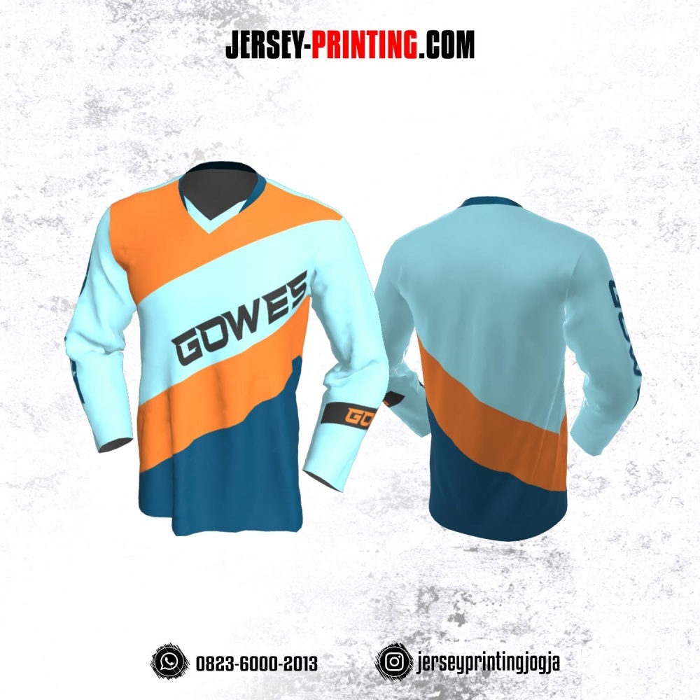 Jersey Gowes Sepeda Biru Orange Lengan Panjang