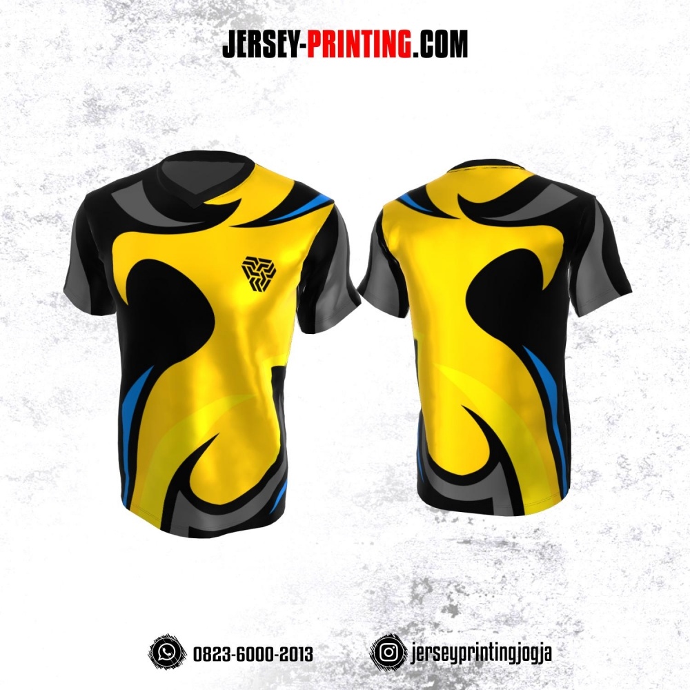 Jersey Atasan Badminton Volly Lari Futsal Kuning Corak Hitam Abu-abu Biru