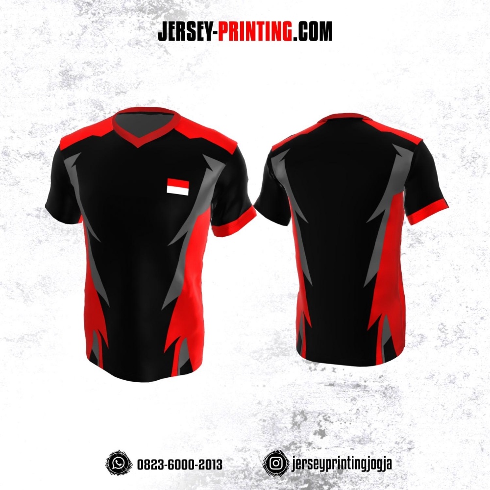 Jersey Atasan Badminton Volly Lari Futsal Hitam Corak Merah Abu-abu