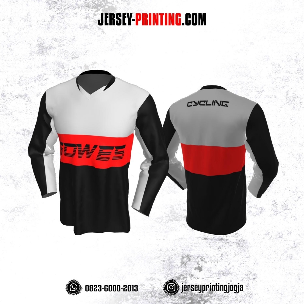 Jersey Gowes Sepeda Hitam Merah Abu Lengan Panjang