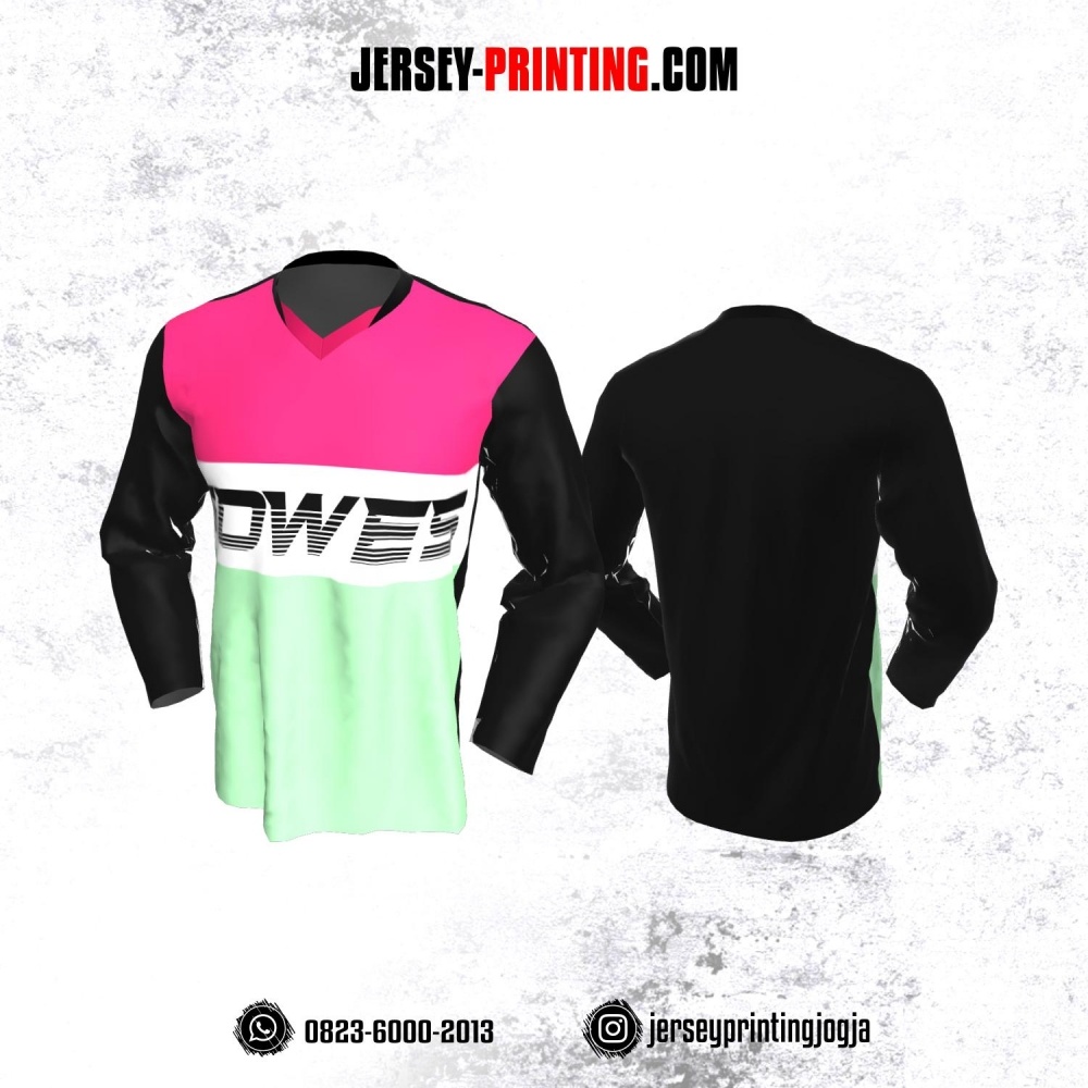 Jersey Gowes Sepeda Hijau Pink Hitam Lengan Panjang