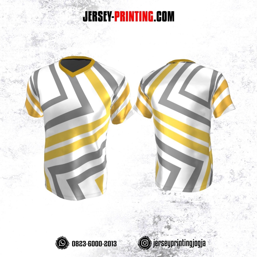 Jersey Atasan Badminton Volly Lari Futsal Putih Abu-abu Kuning Motif Garis
