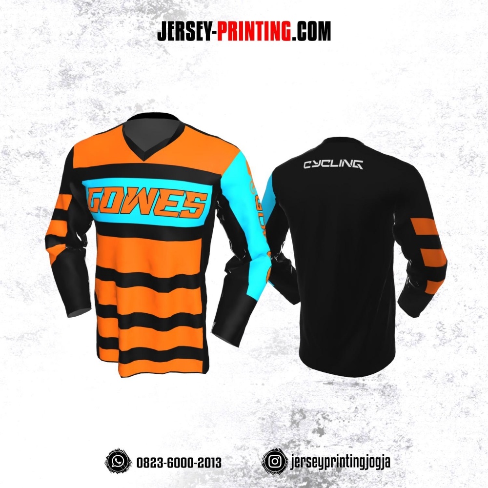 Jersey Gowes Sepeda Hitam Orange Biru Lengan Panjang