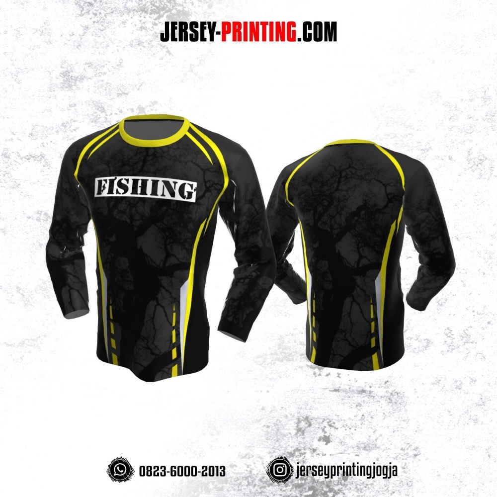 Jersey Mancing Fishing Angler Lengan Panjang Abu-abu Hitam Kuning Motif Abstrak