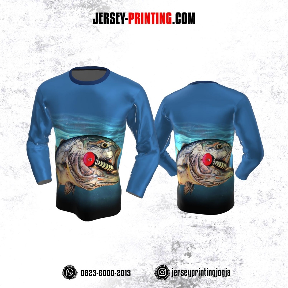 Jersey Mancing Fishing Angler Lengan Panjang Biru Hitam Motif Abstrak