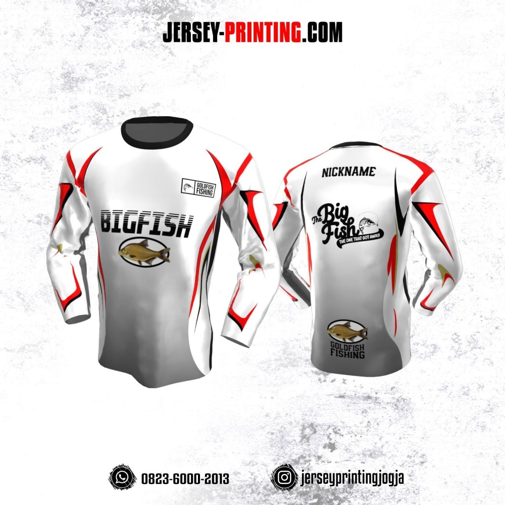 Jersey Mancing Fishing Angler Lengan Panjang Putih Merah Hitam Motif Abstrak