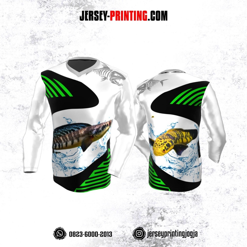 Jersey Mancing Fishing Angler Lengan Panjang Putih Hitam Hijau Motif Garis