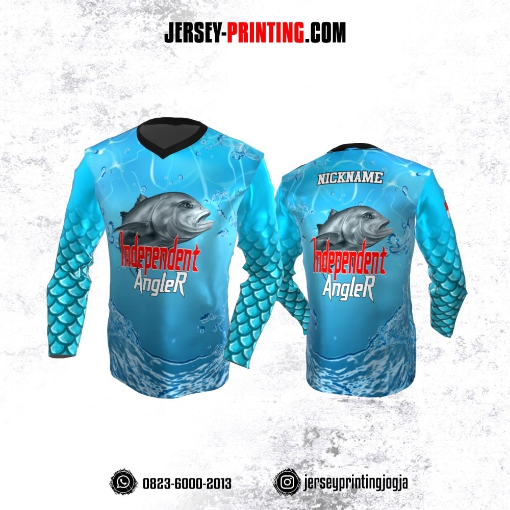 Jersey Mancing Fishing Angler Lengan Panjang Biru Tosca Motif Sisik Ikan