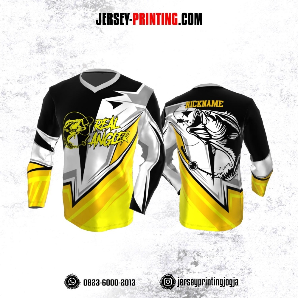 Jersey Mancing Fishing Angler Lengan Panjang Kuning Corak Putih Hitam