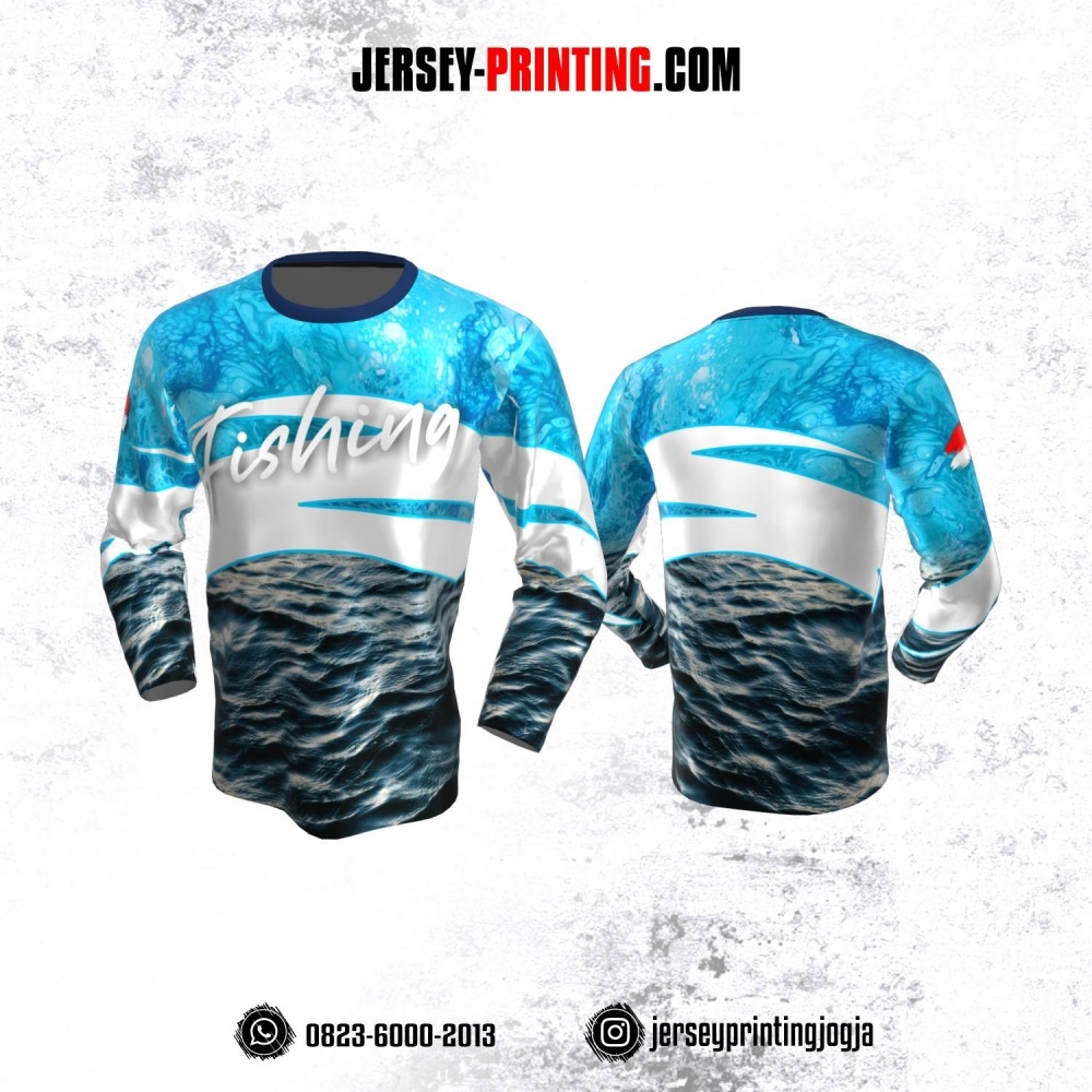 Jersey Mancing Fishing Angler Lengan Panjang Biru Putih Motif Air Laut