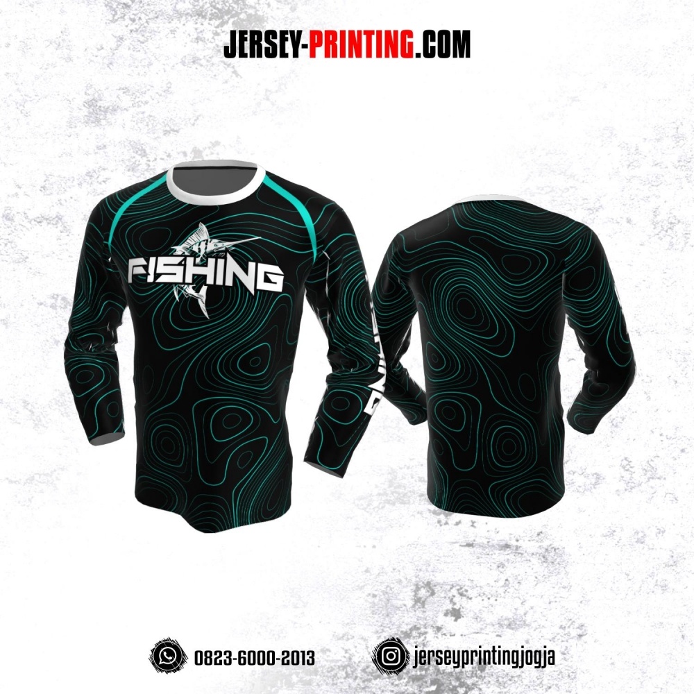 Jersey Mancing Fishing Angler Lengan Panjang Hitam Tosca Motif Topografi