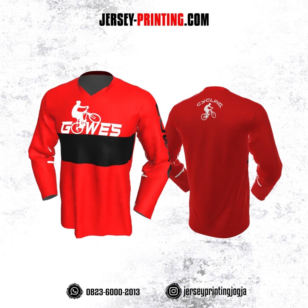 Jersey Gowes Sepeda Hitam Merah Lengan Panjang