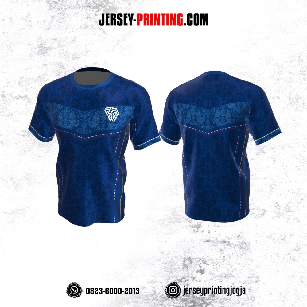 Jersey Atasan Badminton Volly Lari Futsal Navy Putih Merah Motif Batik