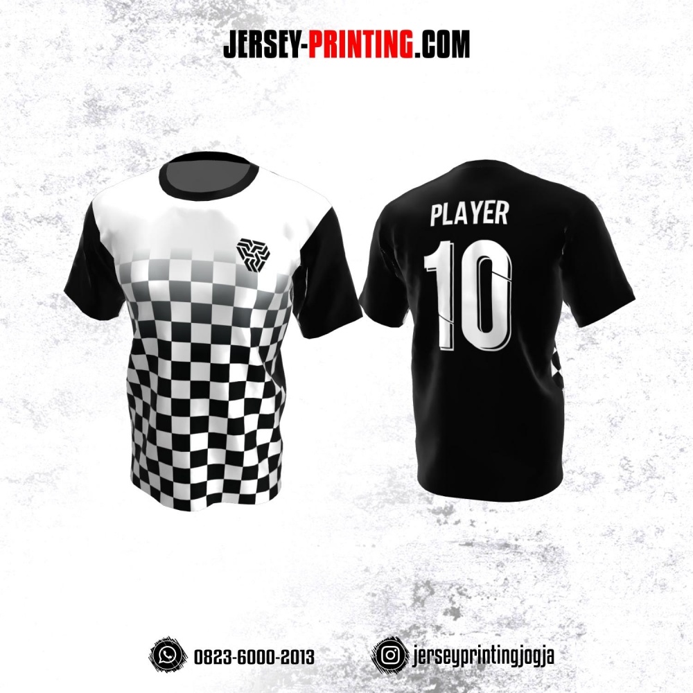 Jersey Atasan Badminton Volly Lari Futsal Hitam Putih Motif Kotak-kotak