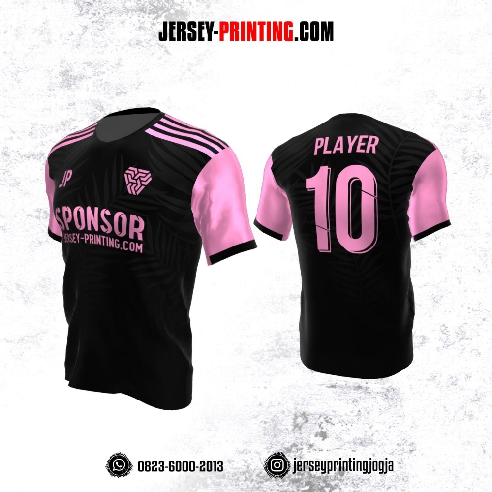 Jersey Atasan Badminton Volly Lari Futsal Hitam Pink Motif Daun Abu-abu