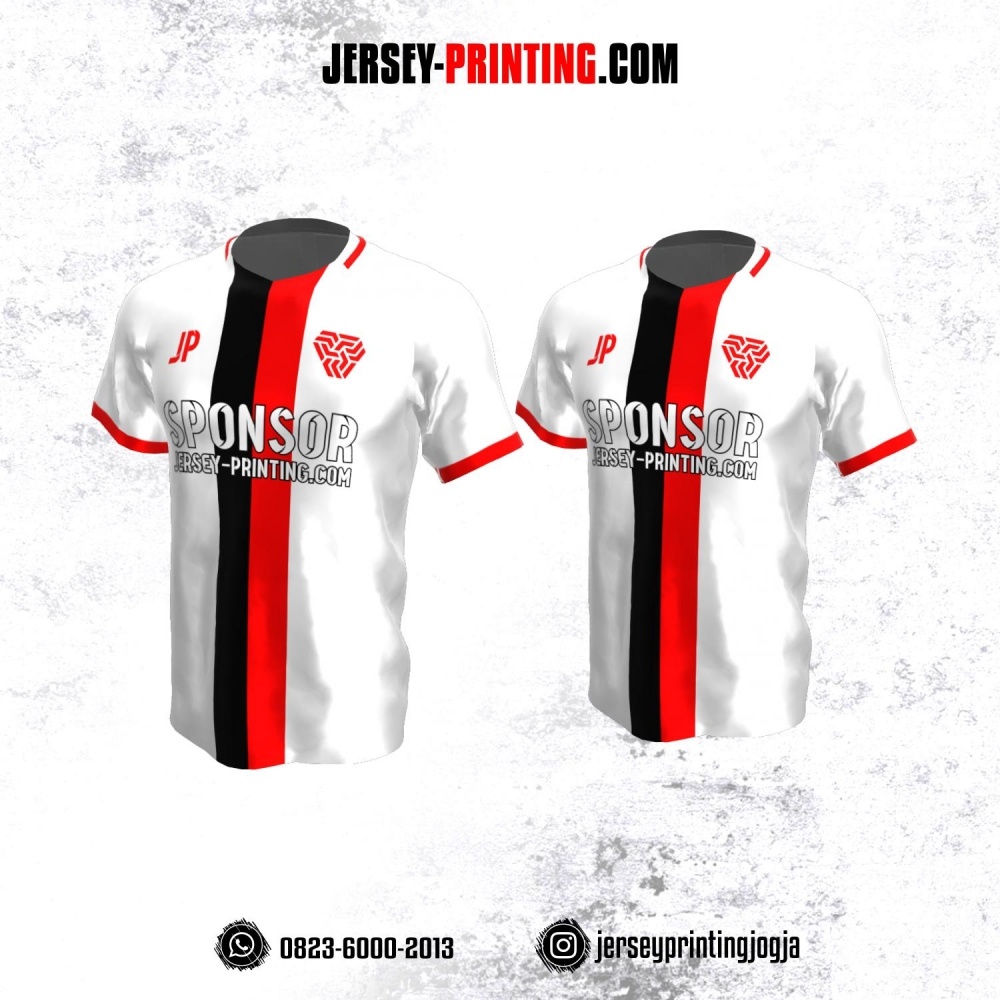 Jersey Atasan Badminton Volly Lari Futsal Putih Stripe Merah Hitam