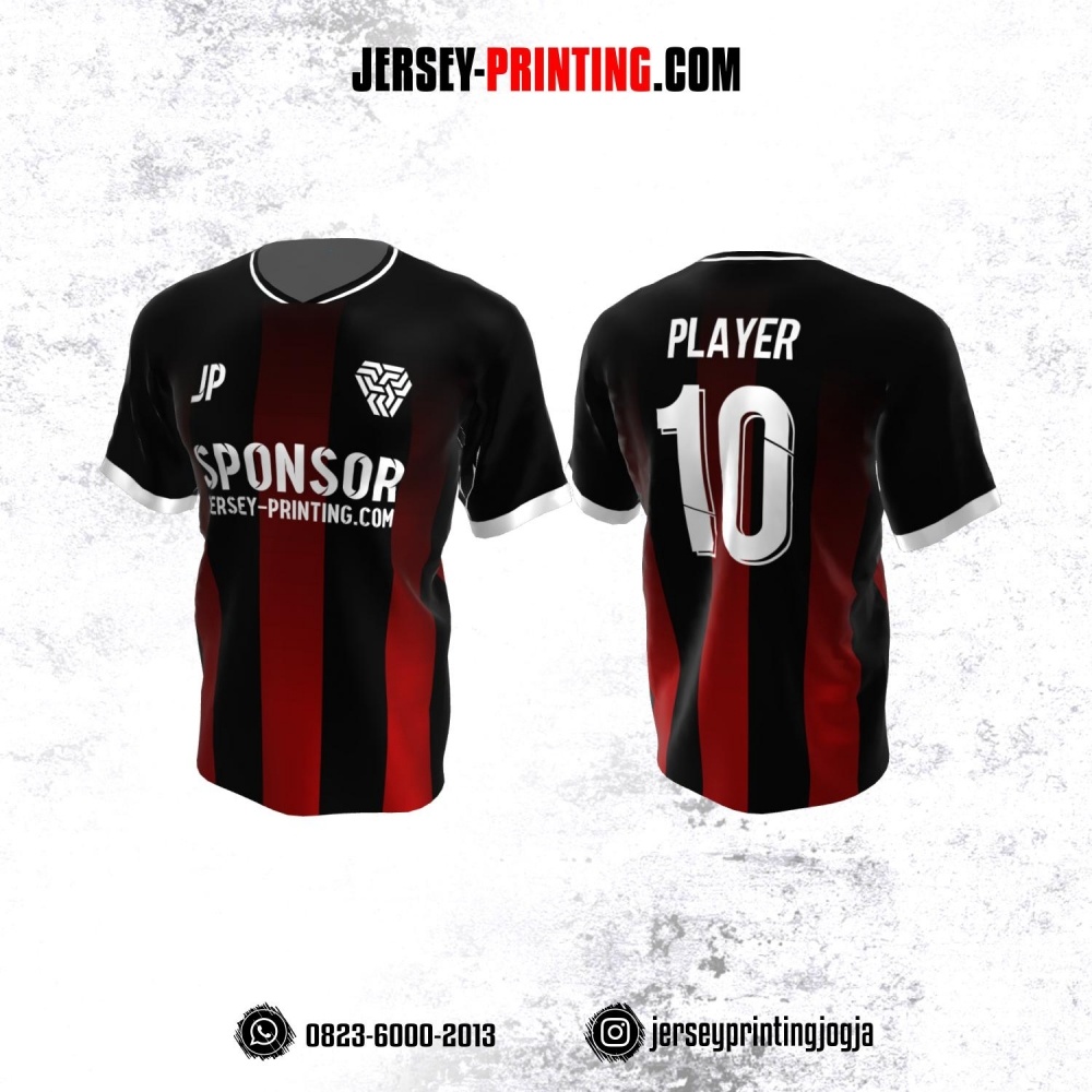 Jersey Atasan Badminton Volly Lari Futsal Hitam Corak Merah Putih