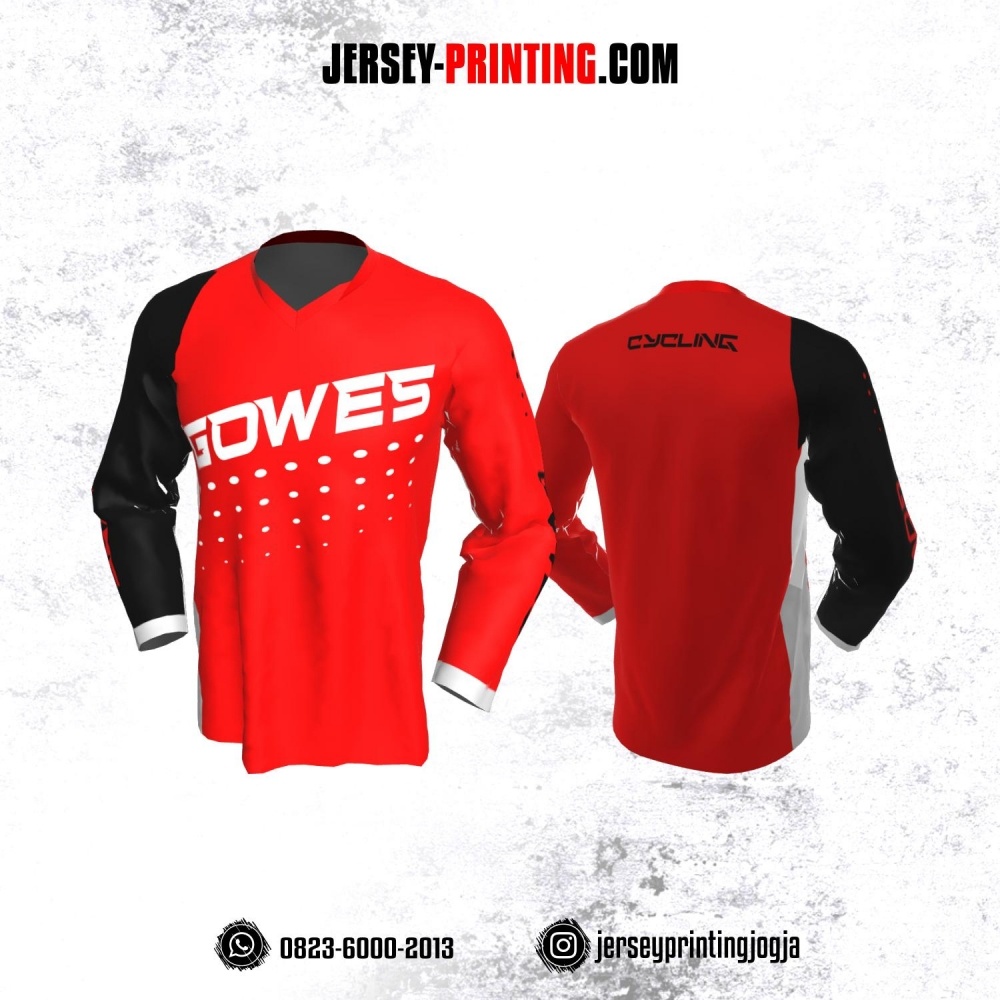 Jersey Gowes Sepeda Hitam Merah Putih Polkadot Lengan Panjang