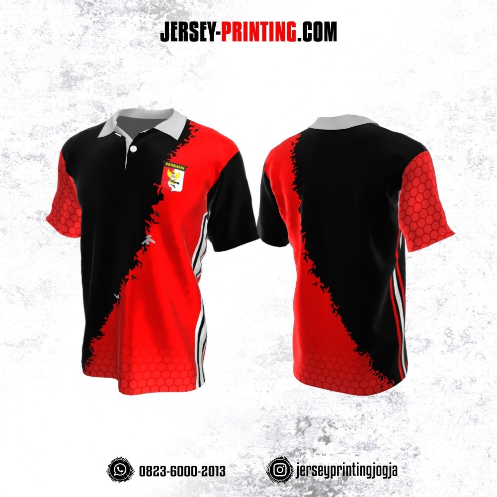 Baju Kaos Jersey Menembak Perbakin Kerah Polo Hitam Merah Putih Motif Honeycomb