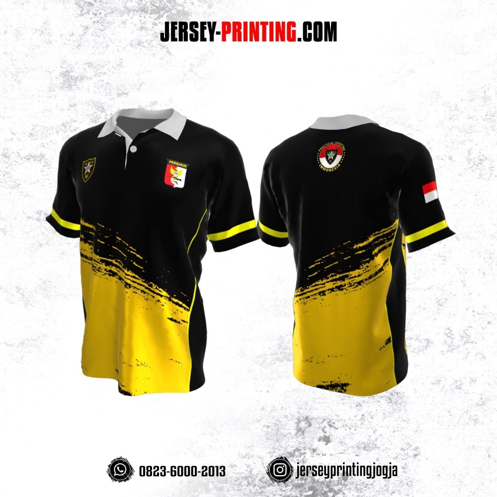 Baju Kaos Jersey Menembak Perbakin Kerah Polo Motif Brush Hitam Kuning