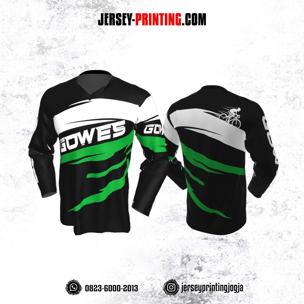 Jersey Gowes Sepeda Hitam Putih Hijau Lengan Panjang