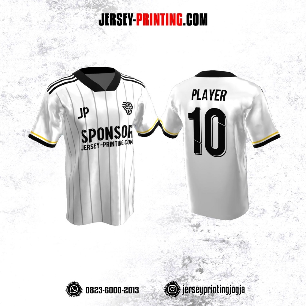 Jersey Atasan Badminton Volly Lari Futsal Putih Abu-abu Hitam Kuning Motif Stripe