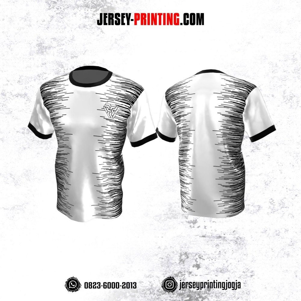 Jersey Atasan Badminton Volly Lari Futsal Putih Motif Garis Abstrak Hitam