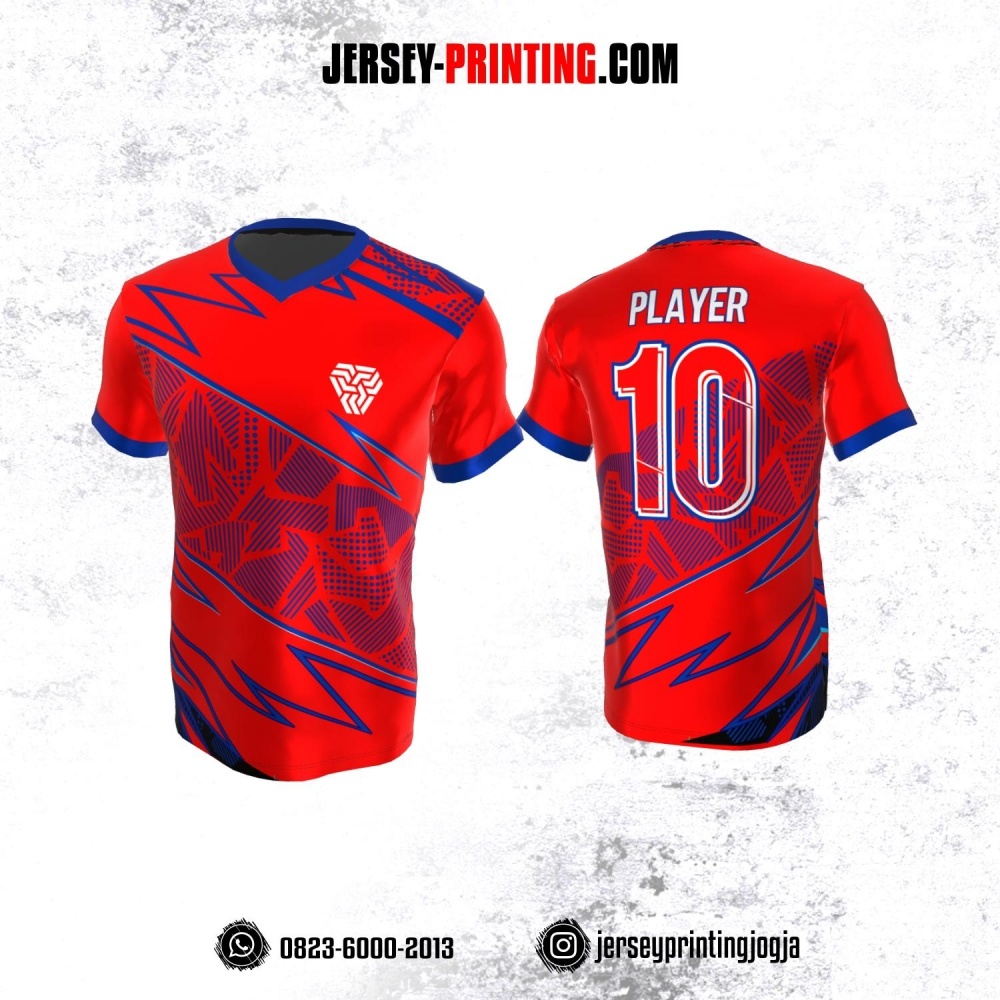 Jersey Atasan Badminton Volly Lari Futsal Merah Motif Abstrak Navy