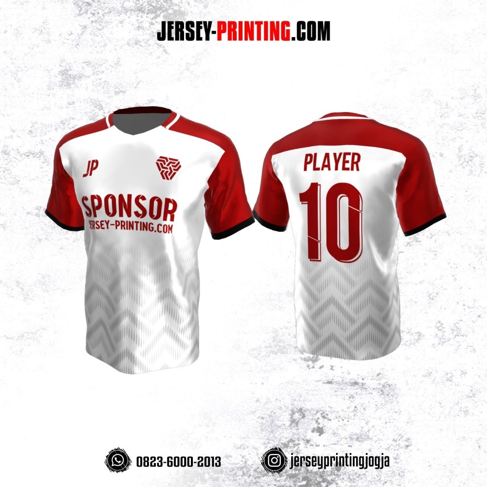 Jersey Atasan Badminton Volly Lari Futsal Putih Merah Abu-abu Motif Seamless