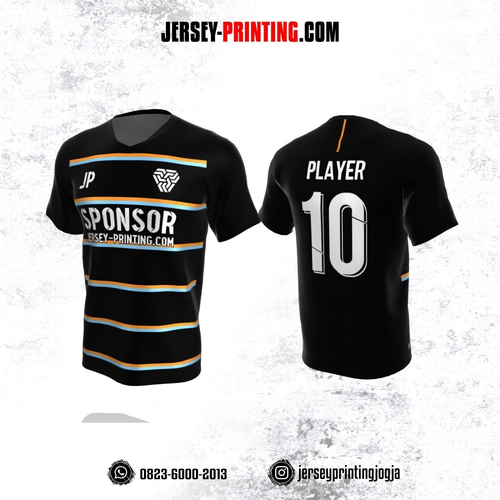 Jersey Atasan Badminton Volly Lari Futsal Hitam Motif Stripe Orange Biru