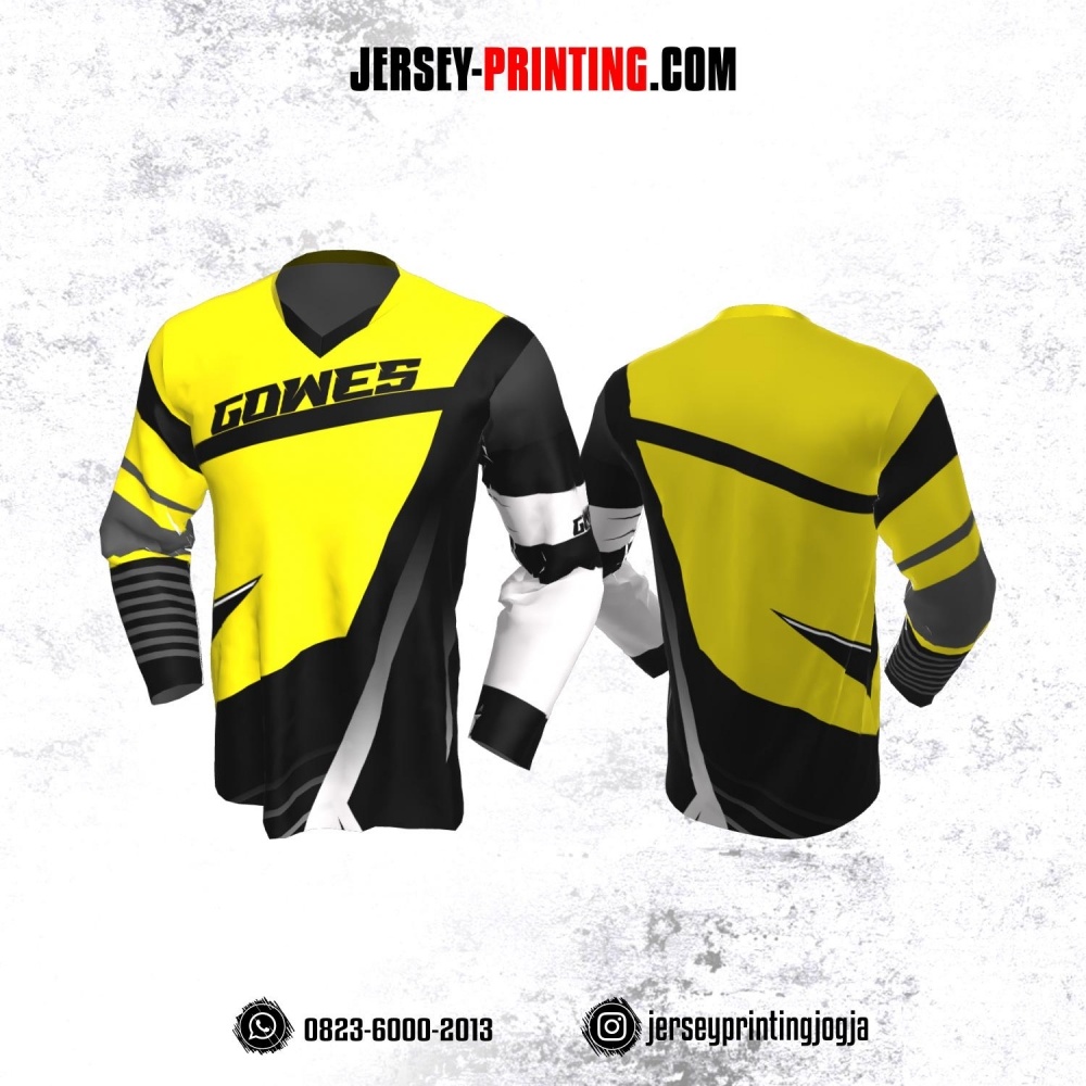 Jersey Gowes Sepeda Hitam Kuning Abu Lengan Panjang