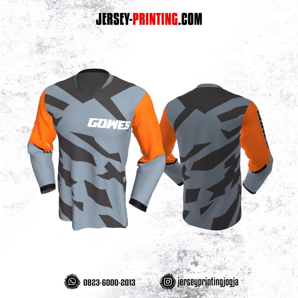 Jersey Gowes Sepeda Abu Orange Lengan Panjang