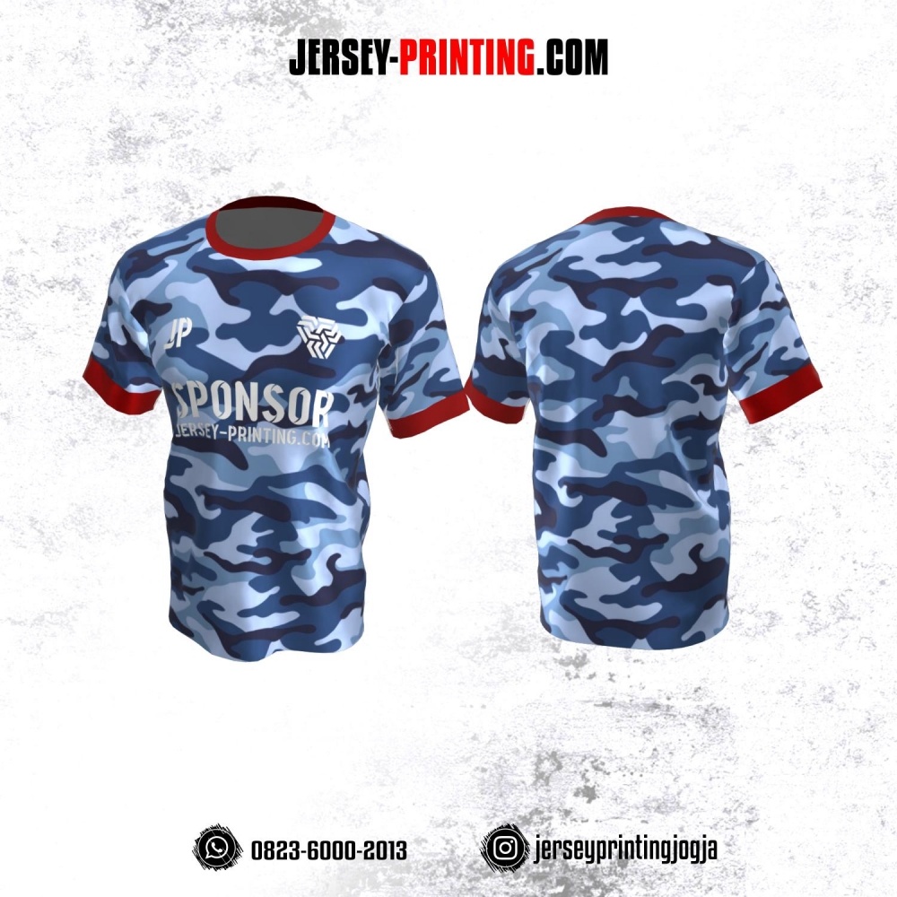 Jersey Atasan Badminton Volly Lari Futsal Biru Navy Merah Motif Loreng