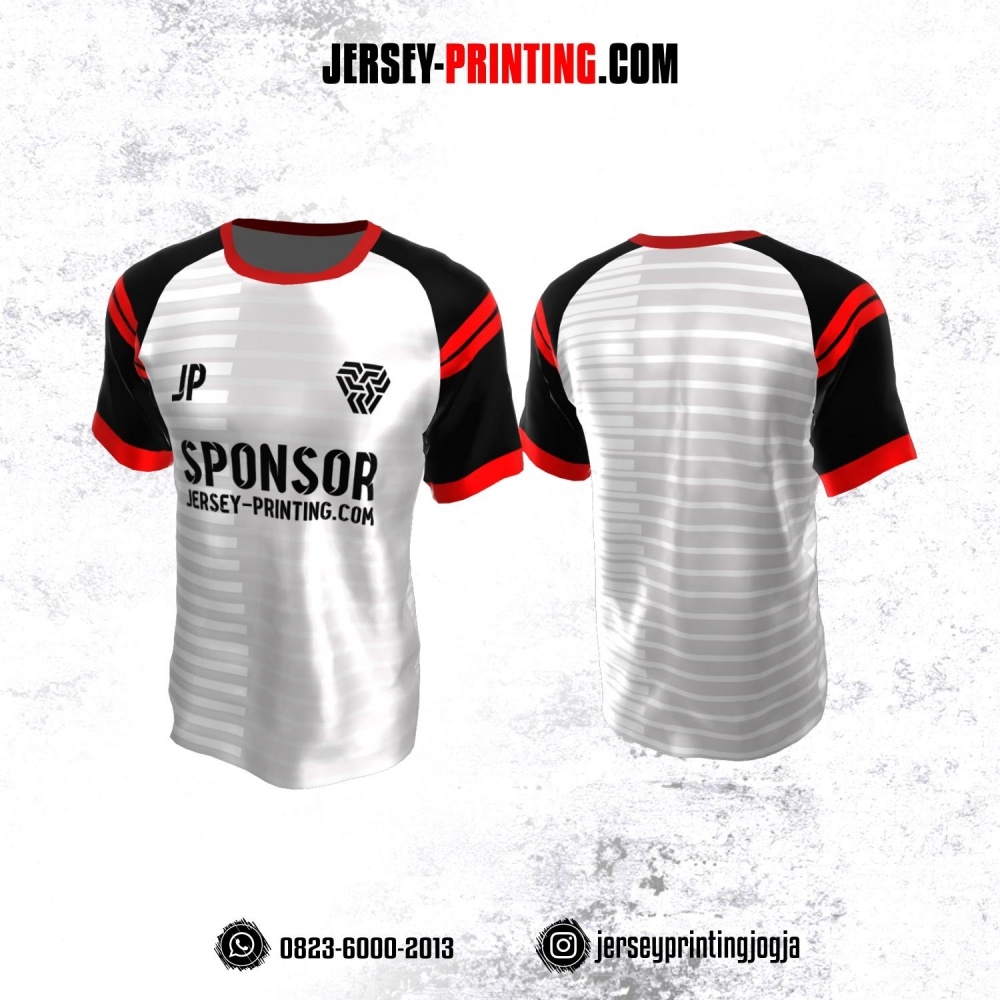 Jersey Atasan Badminton Volly Lari Futsal Abu-abu Putih Hitam Merah Motif Garis