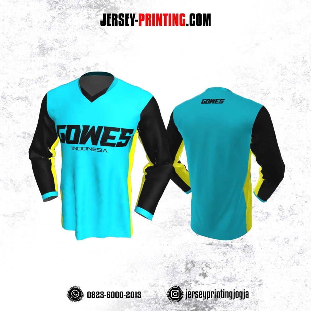 Jersey Gowes Sepeda Biru Kuning Lengan Panjang