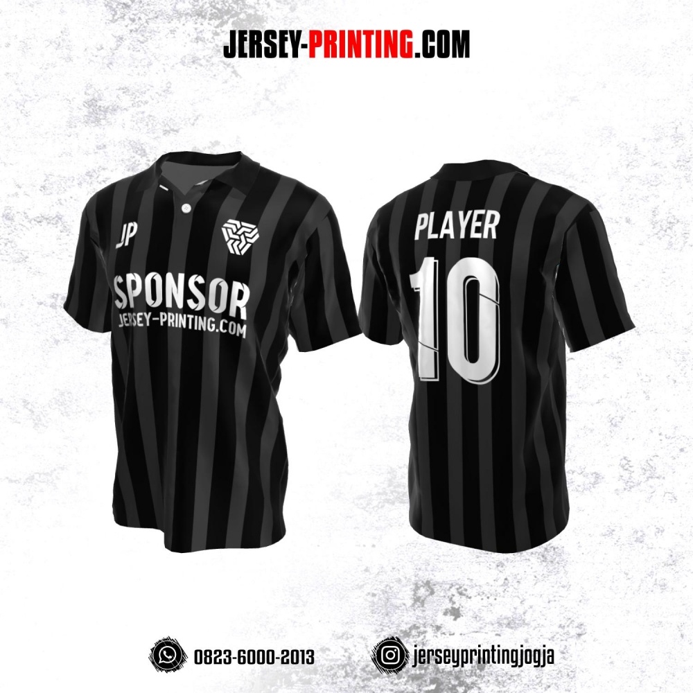 Jersey Atasan Badminton Volly Lari Futsal Kerah Polo Motif Stripe Hitam Abu-abu