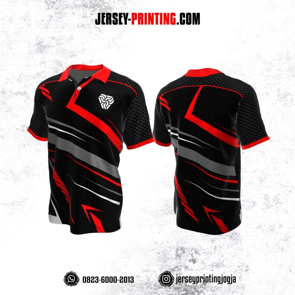 Jersey Atasan Badminton Volly Lari Futsal Kerah Polo Hitam Merah Abu-abu Putih Motif Garis