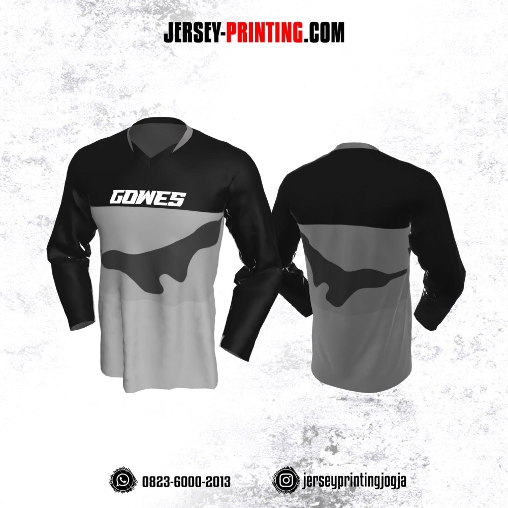 Jersey Gowes Sepeda Abu Hitam Lengan Panjang