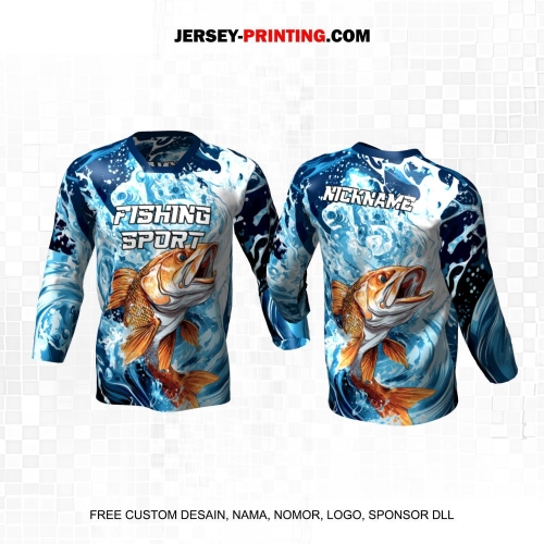 Jersey Mancing Fishing Angler Lengan Panjang Hitam Abu-abu Motif Abstrak Merah